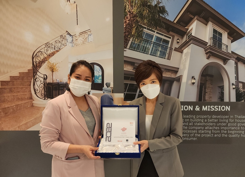 Khun Suparat Veerakul (right) Senior Vice President, Corporate Communication Department, Land and Houses Public Company Limited received the BCI Asia TOP 10 Developer Awards 2022 from Khun Saowapa Naowaoaj (left), General Manager, BCI Central Co.,Ltd, Thailand, on the occasion that the Company’s 3 projects, namely Mantana Ratchaphruek – Nakorn In, Chaiyapruek Bangna km.15 and Prueklada Ratchaphruek-345 received the aforementioned rewards. These three projects are outstanding in various fields which meet the judging criteria that have set the standards, they are widely accepted by both private and government sectors and are also a project that takes into account the impact on the environment as well.