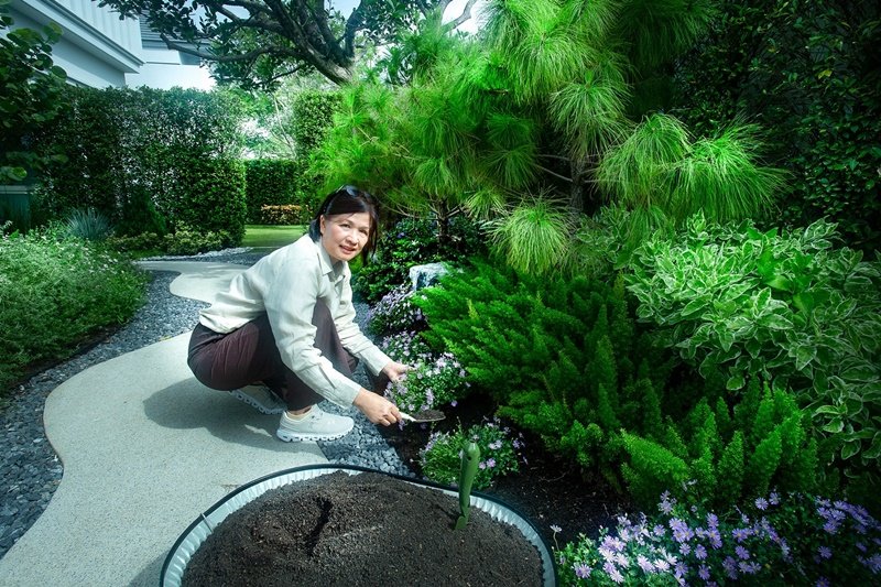 “Our survey of organic waste resulting from our central project tasks in 2024 for 83 projects indicated 4,440 tons of leaf and branch waste which need to be collected and disposed of by landfill, necessitating enormous acreages as well as prohibitive transport and disposal costs. What is worse is the long-term environmental impact. So, in line with the Circular Economy and Sustainable Development Goals (SDGs), Land and Houses has initiated a feasibility study of reusing leaf waste, which tops organic waste amounts under our projects, by turning it into premium potting soil for reuse under our projects instead of buying soil from third parties,” said Mr. Voravanichakorn.