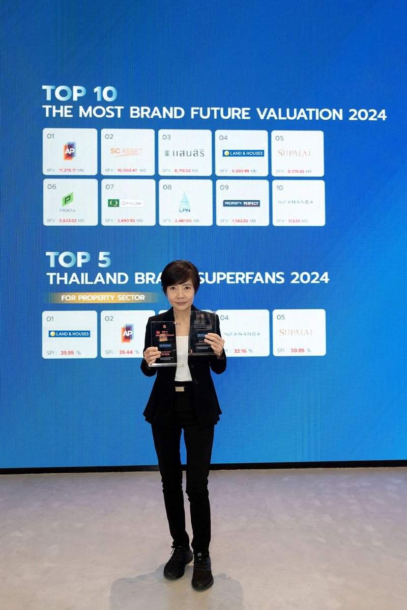 สำหรับ Brand Future Valuation หรือ มูลค่าแบรนด์แห่งอนาคตนั้น ได้แสดงให้เห็นถึงประสิทธิภาพของ แบรนด์ และความแข็งแรงของแบรนด์ในมิติต่างๆ ซึ่งส่งผลต่อมูลค่าของแบรนด์ โดยแลนด์ แอนด์ เฮ้าส์ ตระหนักถึงความสำคัญของคุณภาพสินค้า ที่ตอบสนองความต้องการของผู้บริโภคที่เปลี่ยนแปลงไปอยู่เสมอ จึงมุ่งมั่นที่จะพัฒนาทั้งงานวิจัย นวัตกรรม และเทคโนโลยีใหม่ๆ รวมถึงการบริการหลังการขายที่สร้างความอุ่นใจให้กับลูกค้าตลอดมา รางวัลที่ได้รับนี้จะเป็นกำลังใจของทีมงานที่จะรักษาคุณค่าของแบรนด์ไว้อย่างดีที่สุด ทั้งวันนี้และอนาคต”