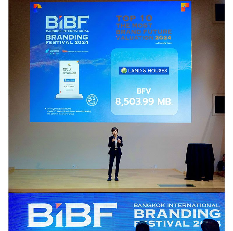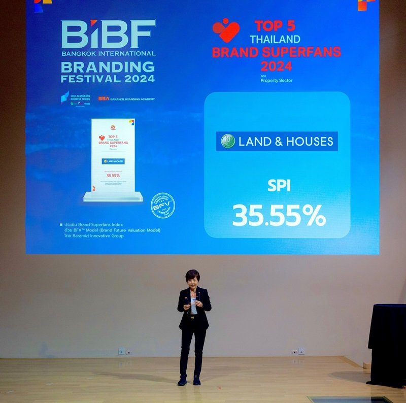 คุณศุภรัชฎ์ วีระกุล ผู้จัดการฝ่ายอาวุโส ฝ่ายสื่อสารองค์กร บริษัท แลนด์ แอนด์ เฮ้าส์ จำกัด (มหาชน) เป็นตัวแทนบริษัทฯ รับ 2 รางวัลเกียรติยศ ได้แก่ รางวัลชนะเลิศ “Thailand Brand Superfans 2024” และรางวัล “The Most Brand Future Valuation 2024” สาขาอสังหาริมทรัพย์ โดยแบรนด์ แลนด์ แอนด์ เฮ้าส์ มีมูลค่าสูงถึง 8,503.99 ล้านบาท จากงาน “BIBF Bangkok International Branding Festival 2024” ซึ่งจัดขึ้นโดย บริษัท บารามีซี่ จำกัด ศูนย์สร้างสรรค์กลยุทธ์และประเมินมูลค่าแบรนด์ ร่วมกับคณะพาณิชยศาสตร์และการบัญชี จุฬาลงกรณ์มหาวิทยาลัย
