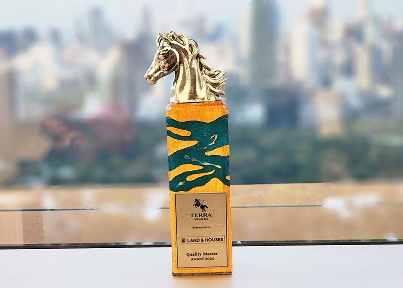 คุณศุภรัชฎ์ วีระกุล (ขวา) ผู้จัดการฝ่ายอาวุโส ฝ่ายสื่อสารองค์กร บริษัท แลนด์ แอนด์ เฮ้าส์ จำกัด (มหาชน) เป็นตัวแทนบริษัทฯ รับรางวัล Quality Master Award 2024 : รางวัลการันตีคุณภาพมาตรฐานสูงสุด จาก คุณสุมิตรา วงภักดี (ซ้าย) กรรมการผู้จัดการ บริษัท เทอร์ร่า มีเดีย แอนด์ คอนซัลติ้ง จำกัด จากงาน TERRAHINT Brand Series 2024 ซึ่งรางวัล Quality Master Award แสดงถึงความเป็นแบรนด์ที่โดดเด่นที่สุดในด้านคุณภาพและความน่าเชื่อถือเมื่อเปรียบเทียบกับแบรนด์อสังหาริมทรัพย์อื่นๆ ซึ่งสอดคล้องกับวิสัยทัศน์ของบริษัทฯ ที่มุ่งดำเนินธุรกิจเพื่อสร้างความเป็นอยู่ที่ดีขึ้นให้กับผู้ซื้อบ้านและผู้เกี่ยวข้องทุกส่วน ภายใต้หลักธรรมาภิบาลที่ดี บริษัทฯ ให้ความสำคัญทั้งกระบวนการ ตั้งแต่เริ่มต้นจนถึงส่งมอบโครงการและบ้านคุณภาพแก่ผู้บริโภค ทั้งการวิจัย การพัฒนา นวัตกรรม เทคโนโลยี การก่อสร้าง การออกแบบ ตลอดจนการคัดเลือกวัสดุ และการบริการเพื่อให้ได้ที่อยู่อาศัยที่สามารถตอบสนองความต้องการของผู้บริโภคซึ่งมีการเปลี่ยนแปลงอยู่เสมอได้อย่างดีและลงตัว เพื่อให้ผู้บริโภคมีคุณภาพชีวิตและความเป็นอยู่ที่ดีขึ้น